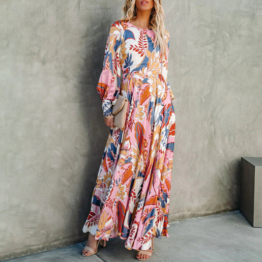 Lantern Sleeve Floral Pullover Top V-Neck Loose Long Sleeve T-Shirt