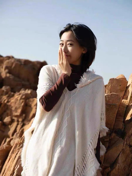 Mori Japanese shawl bohemian fringed sweater sweater grassland travel cloak hooded women