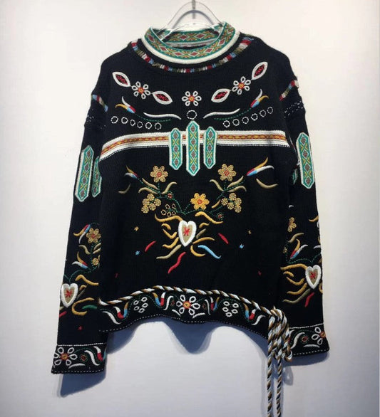 Retro Heavy Industry Embroidery Embroidery National Wind Loose Pullover Lazy Wind Sweater Women