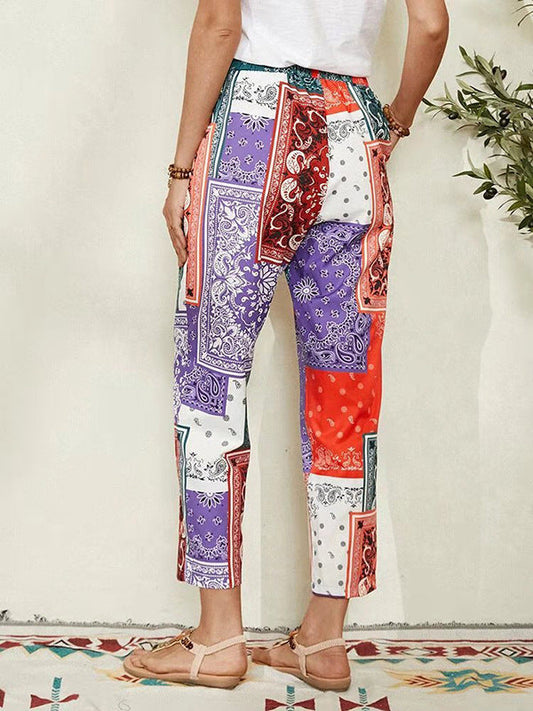 V neck print dress Single Breasted Irregular Waist Lace-Up Dress