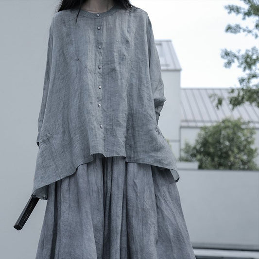 Cotton and linen solid color plus size dress women's summer loose Japanese mid-length skirt women
