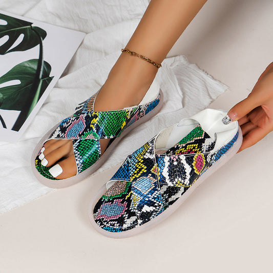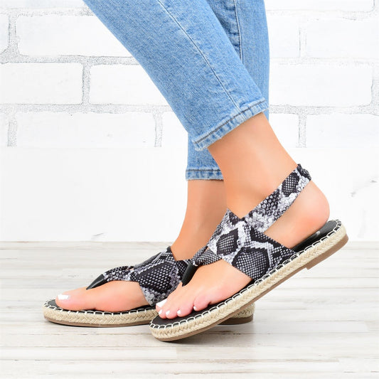 Women's Hemp Rope Woven Snake Print Herringbone Sandals