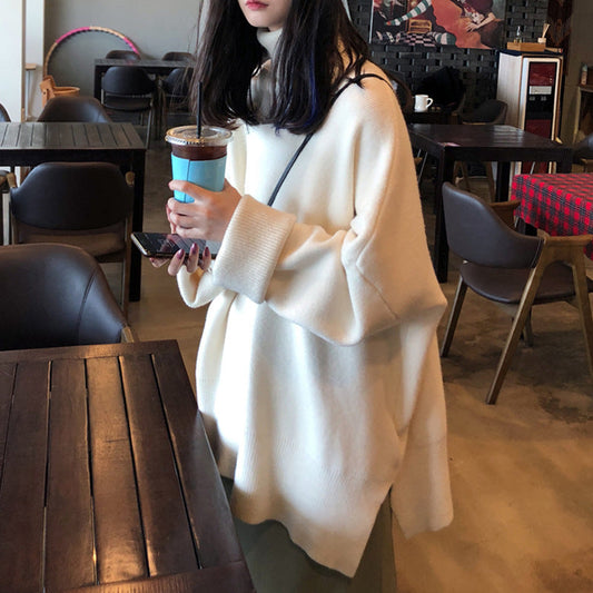 Black turtleneck sweater women fall/winter loose pullover all-match solid color thick outer wear sweater