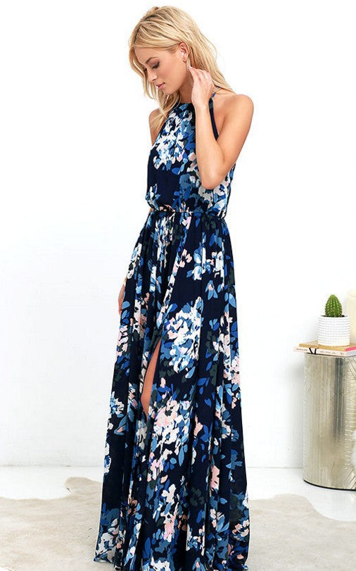Beach skirt Bohemian holiday print sleeveless split hem dress