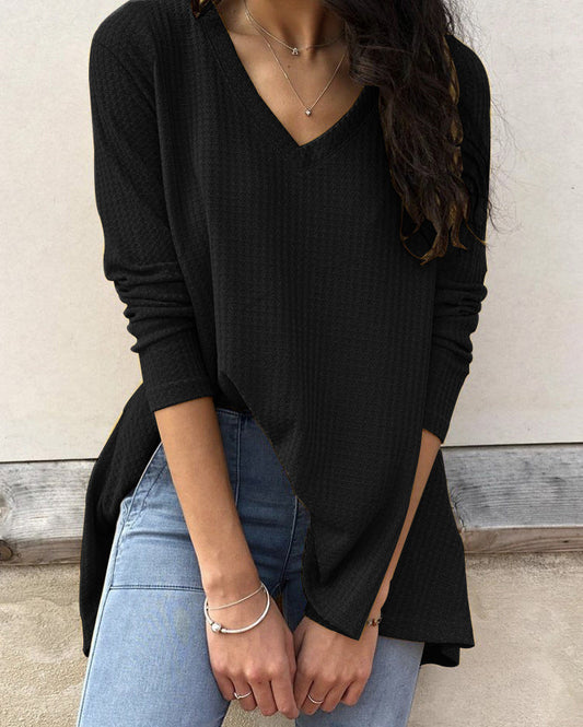 Women's casual loose V-neck bottoming shirt long-sleeved T-shirt