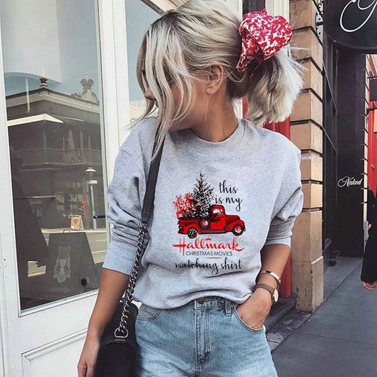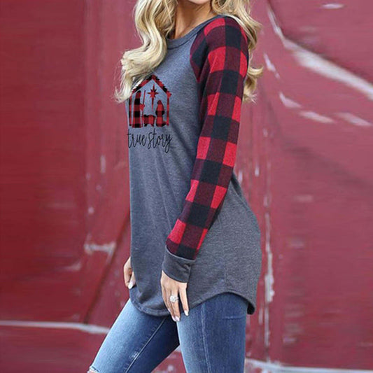 Women's plaid stitching letter printing long-sleeved casual sweater T-shirt