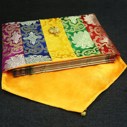 Colorful Buddhist Scripture Storage Bag Organizer Handicrafts Embroidery Satin Button Bag Good Luck Tibetan Home Gift Decorative