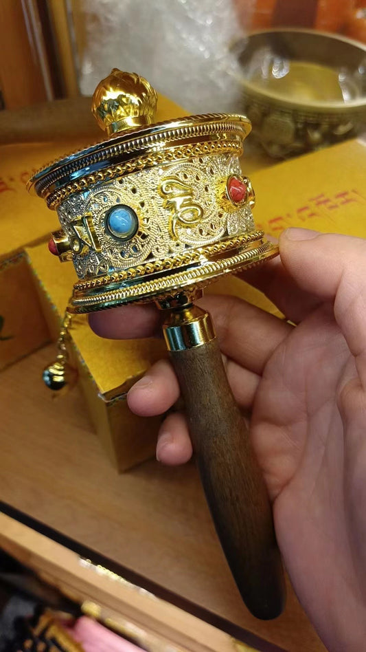 6 CM Hand-cranked Prayer Wheel Tibetan Pure Brass Hand-held Gold Barrel Six-character Mantra Household Tibetan Hand Prayer Wheel