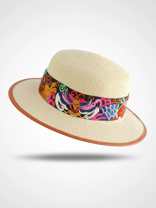 Straw Hat Retro Ethnic Style Embroidery Flower Beach Hat Spring and Summer Basin Hat
