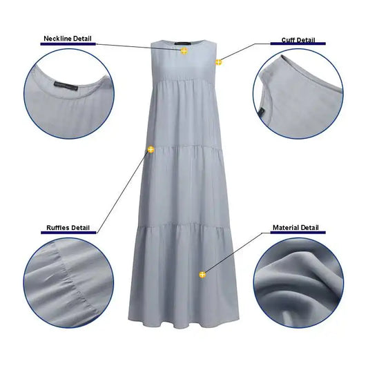 ZANZEA 2023 Stylish Women's Ruffle Sundress Solid Summer Dress Casual Sleeveless Maxi Vestidos Female O neck Robe Oversized