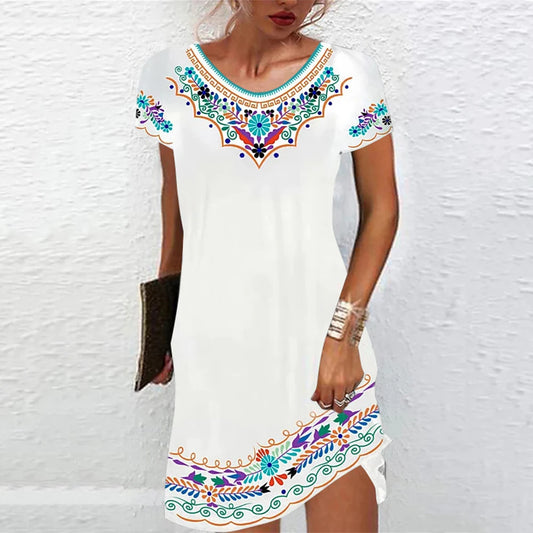 M-3XL Vintage Elegant Ethnic Dress for Women 2023 Summer Loose Bohemian Beach Midi Dress Casual Female Clothing Pullover Skirt