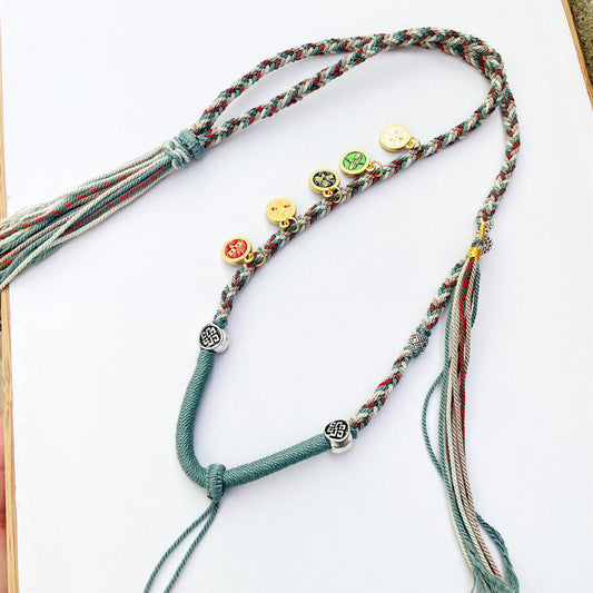 Tibetan Ethnic Style, Five-way God of Wealth Pendant Rope, Thangka Lanyard, Hand-woven Color Necklace Rope
