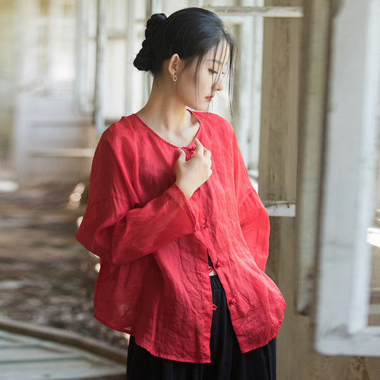 Spring and Summer Cotton and Linen Women's Clothing, New Artistic Buttoned Women's Shirts, Thin Cardigan