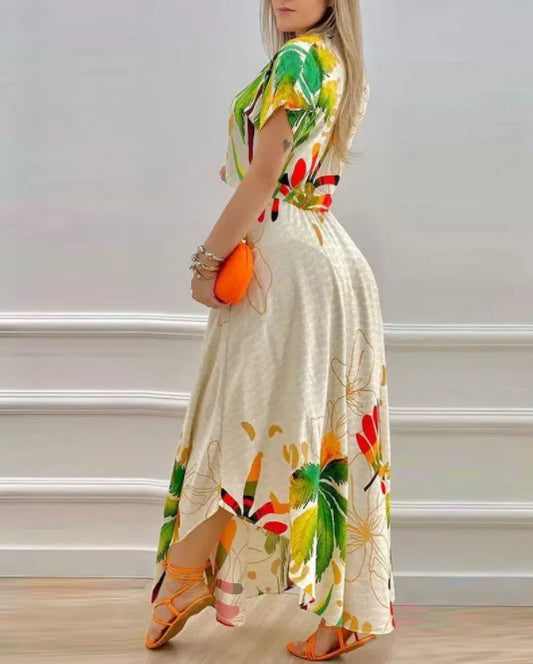 Women Sexy Backless Dress 2019 Summer Bohemian Floral Print Long Dresses Femal V Neck Vestidos Plus Size Lady Casual Clothes