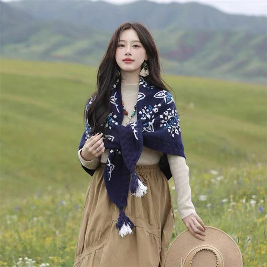 New Knitted Jacquard Vintage Ethnic Style Hanging Beard Triangle Scarf