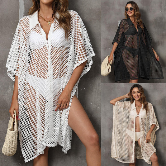 Dresses for Dresses Spring Summer Shirt Dress 2023 White dresses V-Neck Flared Sleeves Lace Hollow Solid Color Sexy Long Dresses