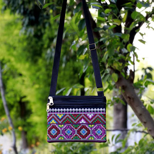 New Ethnic Style Cross Stitch Wallet Double Pull Crossbody Bag One Shoulder Embroidery Bag