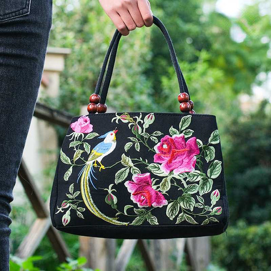 Ethnic Style Embroidered Bags for Women's Handheld Embroidery with Two Zippers Canvas Leisure Bags