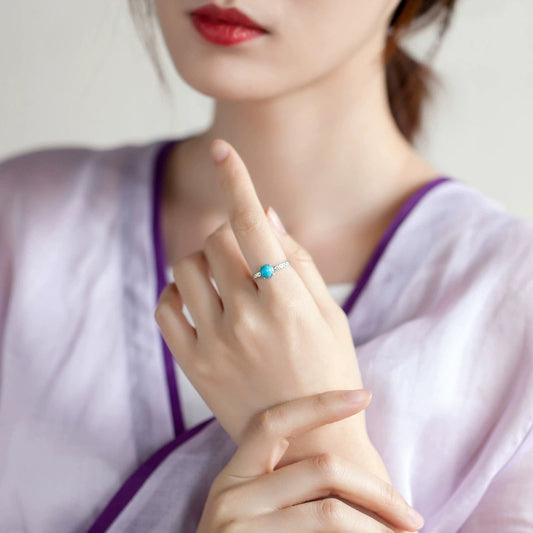 Retro-styled S925 Silver Exquisite Ring Female Opening Carved National Turquoise Tide Jewelry