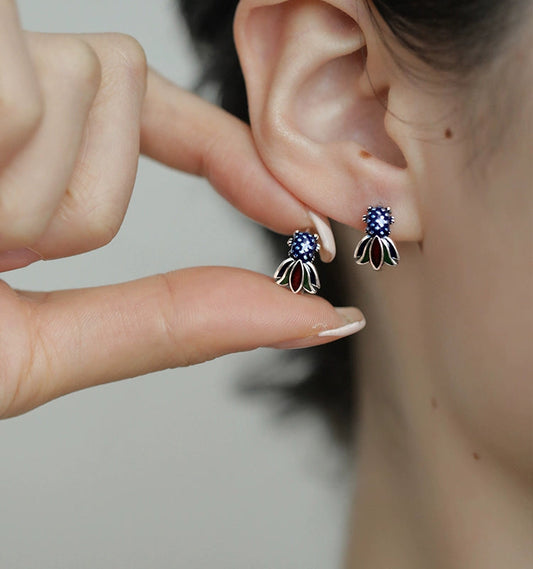 Enamel S925 Sterling Silver Blue Koi Fish Earrings Ladies Design Sense Temperament Retro National Style Earrings