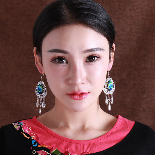 National Style Embroidered Tassel Earrings Retro Fashion Chime Earrings Ethnic Style Versatile Earrings