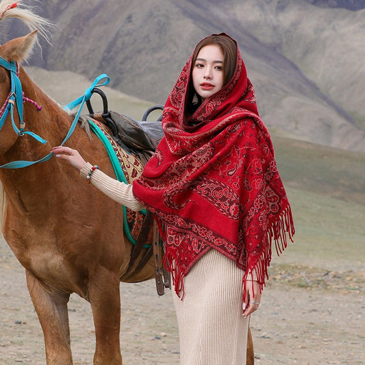 Ethnic Cloak Coat Retro Blanket Warm Autumn and Winter Shawl scarf