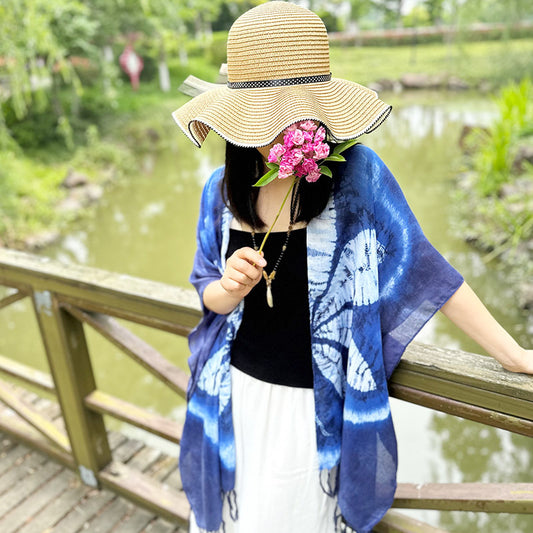 New Tie Dyed Ethnic Style Shawl Women's Summer Sunscreen Beach Scarf Cotton and Hemp Scarf Cloak