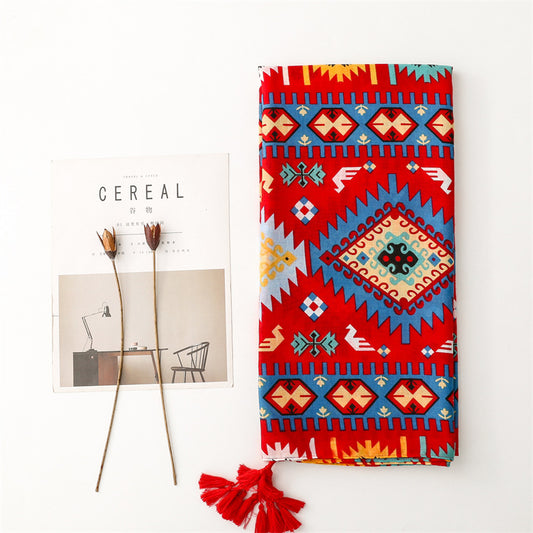 Retro Ethnic Style Red Geometric Bohemian Sunscreen Shawl Cotton Hemp Hand Scarf