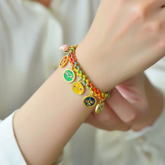Tibetan Handmade Rope Tangka Handwoven Colorful Rope Five Gods of Wealth Bracelet