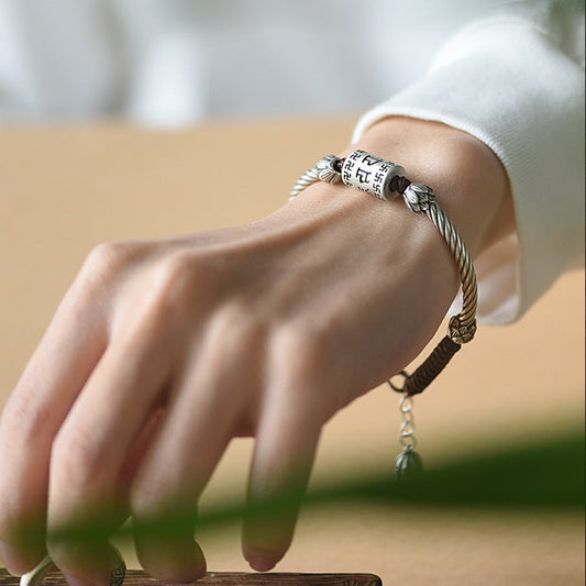 925 Sterling Silver Six-character mantra Transfer Beads Heart Sutra Lovers Bracelet