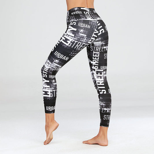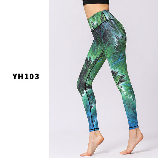 Yoga Pants Women High Waist Hip Grinding Fitness Pants Elastic Tight Quick Dry Print Yoga Pants