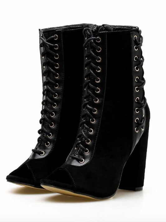 Solid Color Peep-toe Chunky Block Heels Shoes