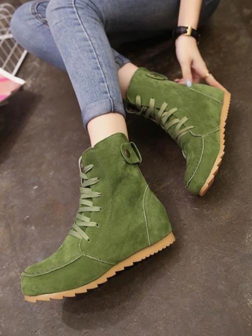 Winter Metallic Split-joint Lace Up Pointed Toes Low-heel Boots
