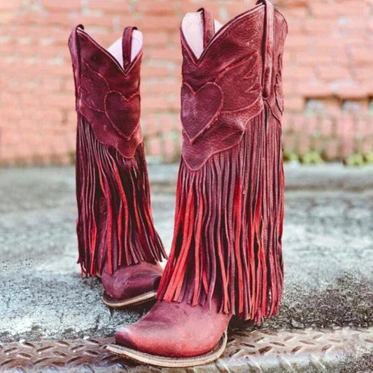Women Boho Winter Tassel Warm Hidden Heel Long Boots