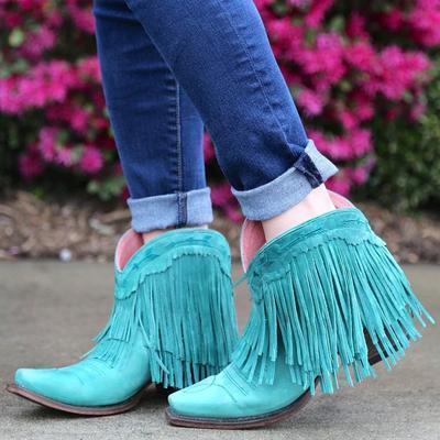 Women Slip On Retro Square Heel Solid Color Suede Boots Point Toe Tassel Shoes