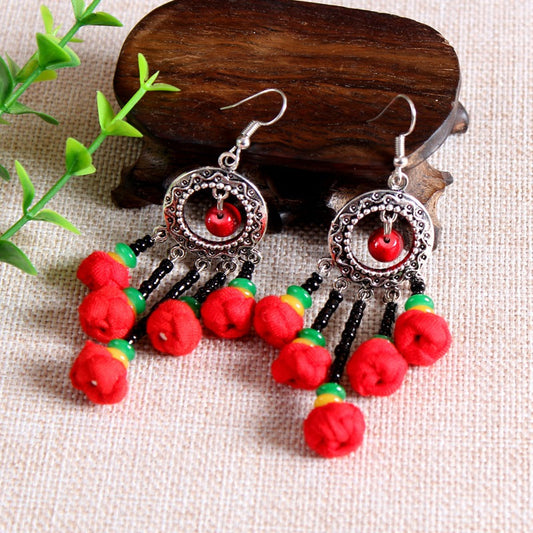 Ethnic Tibet Embroidery Long Tassel Drop Retro Bohemia Handmade Tassel Earrings