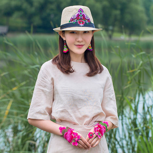 Embroidered hat in summer, straw hat, women's top hat, Tibetan style, sun protection, national style embroidery in summer and autumn