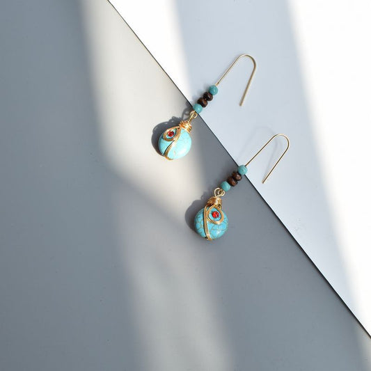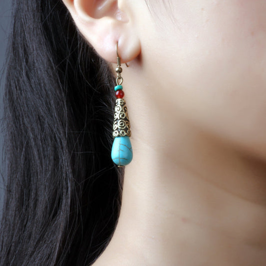 Ethnic Turquoise Earrings Feature Copper Wire Handmade Tibetan Earrings Retro Earrings Ear Clip Earrings