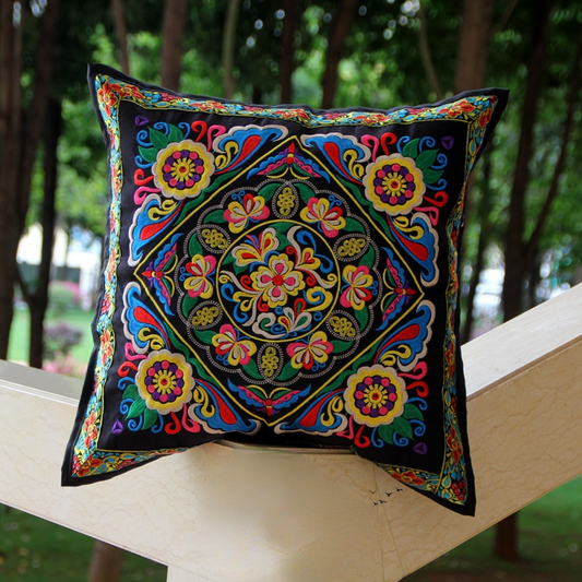Ethnic Style Flower Embroidered Pillow Cover Cushion Cover