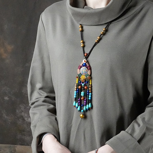 Ethnic sweater chain retro tassel Bohemian necklace jewelry personalized Tibetan sweater chain