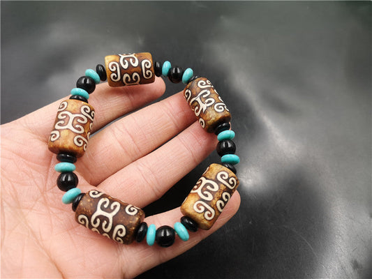 New Tibetan Retro Pattern Beads Agate Barrel Beads Bracelet Tibetan Old Agate Bracelets