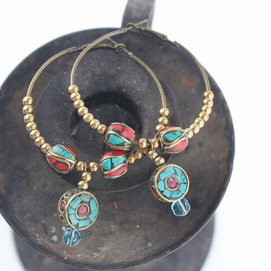 Original Ethnic Style Earrings Nepal Earrings Tibetan Earrings Large Circle Female Earrings Vintage Earrings