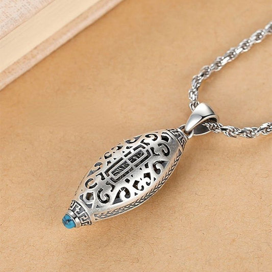 S925 Sterling Silver Lucky Transfer Six Words Turquoise Nine Eyes Beads Pendant Necklace