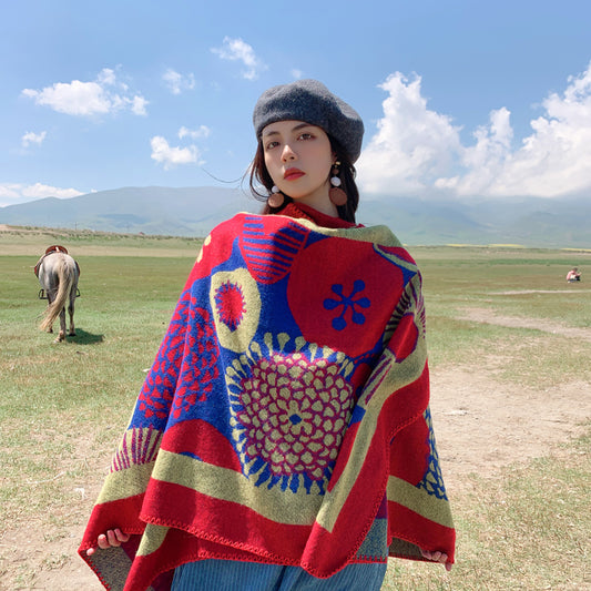 Ethnic style Autumn and Winter Thickened Cold resistant and Warm keeping Cape scarf