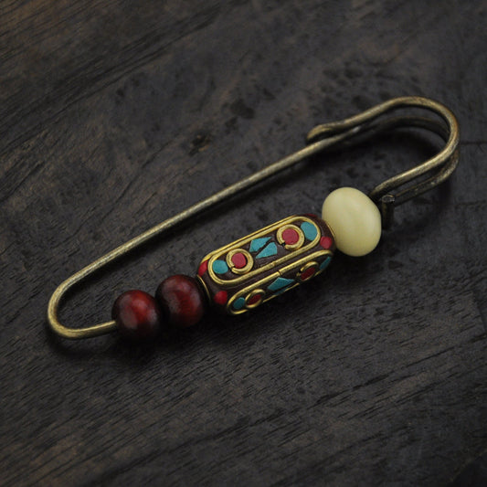 Vintage handmade pearl white jade bodhi sandalwood bead brooch sweater ethnic style