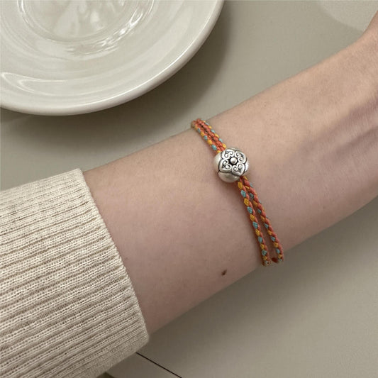 Silver Little Persimmon Bracelet Female Retro Ethnic Minority Design Handwoven Wisdom Success Handrope Bracelet