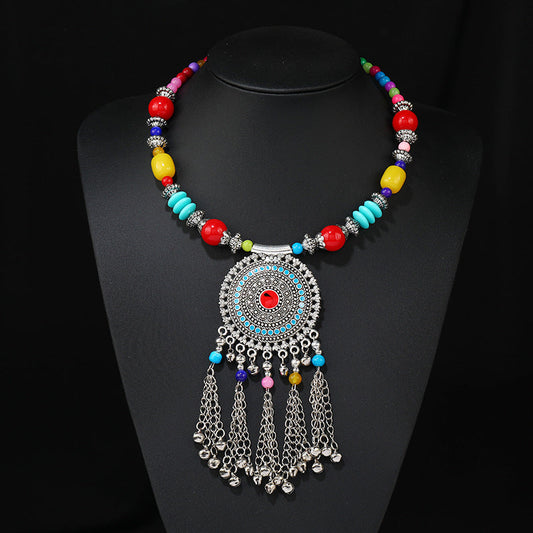 Retro Ethnic Tibetan Necklace Bell Tassel Colored Beaded Collar Sweater Chain Accessories