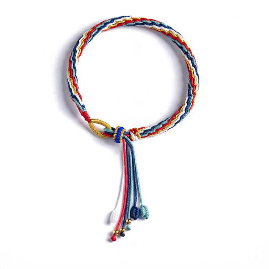 Tibetan Weaving Five-way God of Wealth Bracelet, Pure Hand-woven Cotton Thread Bracelet