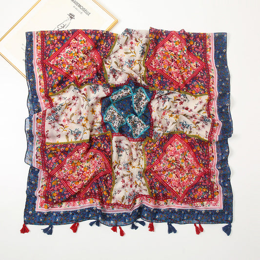 New Retro Fragmented Flower Art Cotton Linen Scarf for Women Thin Bohemian Print Splice Cashew Nut Ethnic Style