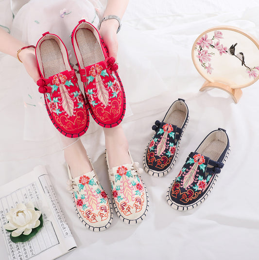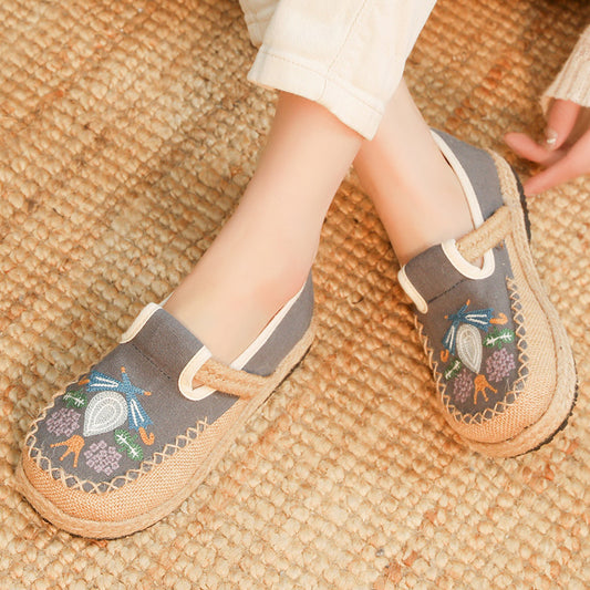 Comfortable Round Toe Cotton Hemp Midsole Women's Casual Shoes, Ethnic Style Lazy Person, One Footed Fisherman's Shoes, Retro Embroidered Shoes
